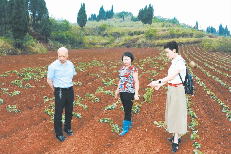 资阳市科协、安岳县科协相关负责人在红薯基地调研