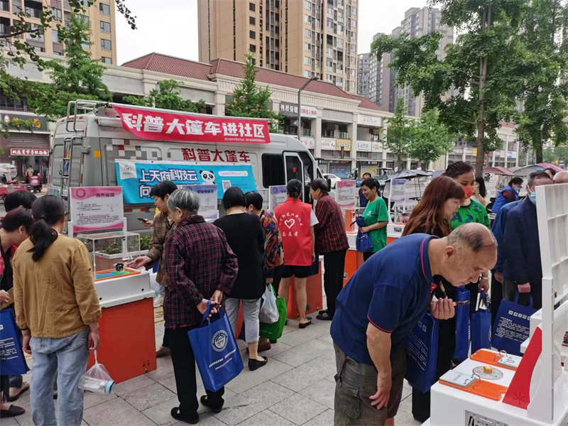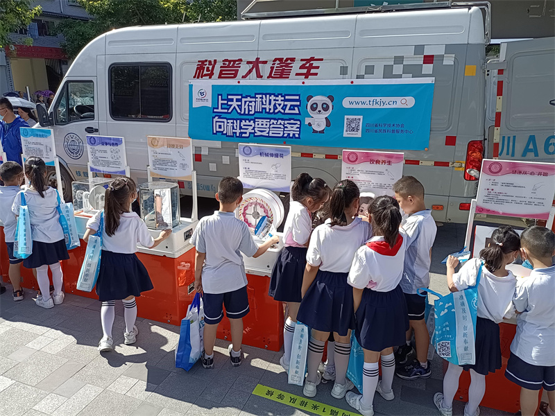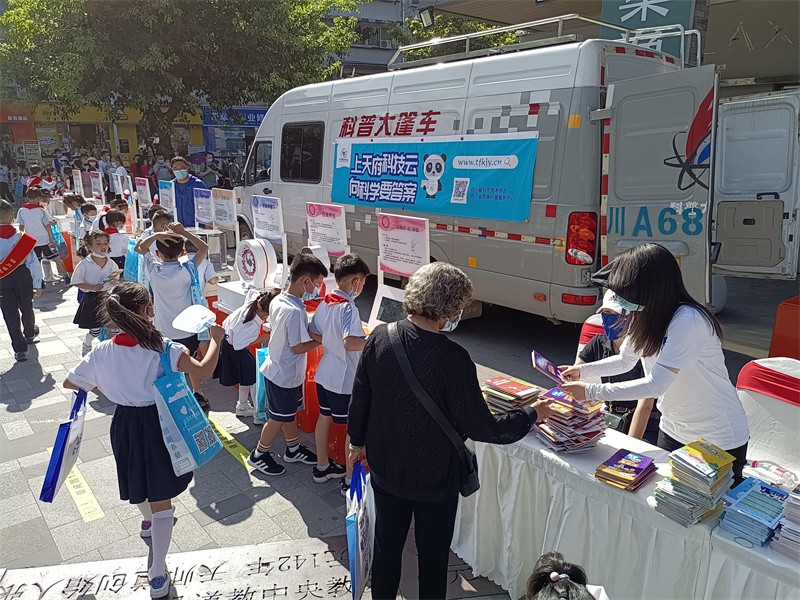为贯彻国务院关于《全民科学素质行动规划纲要(2021-2035年)》文件精神,进一步扩大天府科技云平台的知晓度,四川省民族科普服务中心以科普大篷车为载体,联合成都市科协于4月25日——29日在都江堰市、彭州市、青白江区、温江区、武侯区启动了以“上天府科技云 向科学要答案”为主题的科普大篷车进社区、进学校活动,旨在引导广大群众使用天府科技云平台获取科普知识,努力让“上天府科技云,向科学要答案”意识家喻户晓。